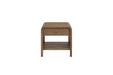 Introducing the Elure Waterfall Endtable in Latte Finish, where contemporary elegance meets functional design. Crafted with a blend of sleek lines and gentle curved edges, this endtable exudes a softer modern aesthetic that seamlessly complements any living space. Designed with practicality in mind, the Elure features a convenient storage drawer and a lower shelf, offering ample space to keep your essentials organized and within easy reach. The custom circular hardware adds a touch of sophistication and ties together the endtable's overall contemporary appeal. Ideal for both practical use and aesthetic enhancement, the Elure Waterfall Endtable in Latte Finish is the perfect addition to modern homes seeking a balance of style and functionality. Elevate your living room or bedroom with this versatile piece that promises both form and function.