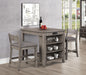 Introducing the Hartford Counter Height Gathering Table in a captivating warm grayish brown finish, the epitome of style and functionality for your living space. Designed with your morning coffee rituals in mind, this exquisite table offers a delightful blend of elegance and practicality. Crafted with meticulous attention to detail, the Hartford Counter Height Gathering Table stands tall and proud, adding a touch of sophistication to any room. Its warm grayish brown finish exudes a sense of timeless charm, seamlessly blending with various decor styles, from contemporary to rustic. This remarkable table boasts three built-in storage shelves thoughtfully placed on the end, allowing you to keep your coffee essentials close at hand. Whether it's your favorite mugs, coffee beans, or accessories, you'll find ample space to store and showcase your morning treasures. These shelves not only provide convenient storage but also serve as stylish display areas for decorative accents or cherished collectibles. The counter height design of the Hartford Gathering Table elevates your coffee experience, quite literally. It promotes a comfortable and intimate setting, encouraging conversation and a sense of togetherness. Whether you're enjoying a quick caffeine fix before starting your day or hosting friends for a leisurely weekend brunch, this table sets the perfect stage for cherished moments. Built with durability in mind, this gathering table features high-quality materials and expert craftsmanship. The sturdy construction ensures stability and longevity, while the smooth surface is easy to clean and maintain. Spend more time savoring your morning coffee and less time worrying about upkeep. Elevate your mornings with the Hartford Counter Height Gathering Table, the epitome of style, versatility, and practicality. It's time to create lasting memories as you sip your favorite brew, surrounded by the charm and convenience of this remarkable piece. Start your day right with the perfect companion for your coffee rituals.