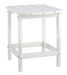 Add cottage-quaint charm to your outdoor oasis with this outdoor end table. Made of a hearty hard plastic material with a touch of texture, it’s sure to weather the seasons beautifully. Designed to shed rainwater, the table’s slatted top with gently rounded corners provides exceptional form and function.