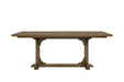 Elevate your dining experience with the Tarrington Counter Height Trestle Table, a perfect blend of craftsmanship and functionality. Crafted with veneers and finished in a warm tone, this table offers both durability and refined style. The striking geometric parquet tabletop design adds visual depth, while the robust trestle base provides timeless stability. Measuring 84" in length, it conveniently extends to 114" with two 15" leaves, making it ideal for both intimate meals and larger gatherings.