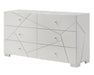 Transform your bedroom into a contemporary sanctuary with this sophisticated and stylish furniture ensemble. Defined by its bold geometric accents and pristine high-gloss white finish, this collection exudes modern elegance while maintaining a clean, minimalist aesthetic. The centerpiece bed is enhanced with a dramatic LED-lit headboard, adding ambiance and a touch of luxury to your space. Coordinated storage pieces, including a dresser, chest, and nightstands, provide ample organization while showcasing sleek hardware and clean lines. Perfect for creating a cohesive and serene atmosphere, this bedroom group offers the perfect blend of form and function, making your retreat as stunning as it is practical.