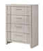 Infused with casual elegance and contemporary charm, this bedroom group brings a light, refreshing presence to any home. The soft white wood finish is complemented by a textured, upholstered headboard with vertical channel detailing that adds comfort and visual interest. Clean lines and sleek, bar-style hardware give the case pieces a modern edge, while subtle fluted paneling provides just the right amount of dimension. Designed for both style and functionality, this collection offers ample storage and a cohesive, streamlined look that easily blends with neutral or soft-toned interiors.
