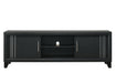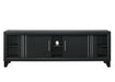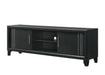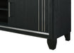 Clean, functional, and stylish, this entertainment console delivers a modern edge with subtle decorative detail. The rich, dark-toned wood finish lends an edgy, contemporary feel, while the framed silhouette and metal door accents add a touch of character. Interior shelves offer flexible storage behind dual sliding doors, perfect for organizing electronics and accessories. A center compartment with cord management keeps media components neatly displayed and connected. Whether used for a sleek TV setup or as a chic storage piece, this console offers the ideal balance of design and utility for today’s living spaces.