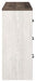 Cool, clean and casually modern. This dresser’s wispy whitewash and gray finish sets the tone for your calming sanctuary. Large linear pulls add dimension and authenticity. Six smooth-gliding drawers neatly accommodate your wardrobe needs.