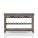 Enhance your entryway or hallway with the Hartford Hallway Accent Table, designed for both aesthetic appeal and practical utility. This charming table features a weathered grey finish and sturdy construction, adding a touch of timeless elegance to your decor. It includes two smoothly sliding drawers, built-in wine rack, and a lower shelf designed to hold your decorative items or daily essentials. This table combines classic style with modern functionality, ideal for any space, to create the perfect welcoming touch to your home.