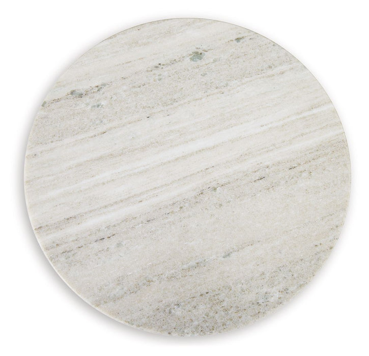 Simply elegant. This accent table combines the beauty of wood and stone, appealing to the luxurious but inviting vibe of your contemporary aesthetic. A beige marble top pairs with cylindrical legs in a brown finish, giving this refined piece an aura of welcoming warmth. It’s a homey take on highbrow design, balancing approachable character with your taste for elevated styling.