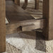 This counter height dining table might be simple at first sight, but a closer look reveals beauty in the details. From the through-tenon pedestal base to the plank-effect table top and distressed nutmeg finish, this table is beaming with charm. Small scale is especially suited to loft-style living, but two optional leaves ensure there’s plenty of space for parties up to eight.