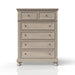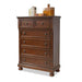 Introducing the Prescott 5 Drawer Chest in a beautiful finish, perfect for adding style and function to your bedroom. Measuring 53 inches in height, 38 inches in width, and 18 inches in depth, this chest provides ample storage space for all your clothing and accessories. The chest features five spacious drawers with ball bearing guides, ensuring easy and smooth opening and closing. The transitional design of the Prescott chest seamlessly blends traditional and contemporary styles, making it a proven crowd pleaser. Crafted from high-quality materials, this chest is both durable and stylish. The finish adds warmth and richness to the piece, making it a beautiful addition to any bedroom decor. Whether you're looking to update your bedroom furniture or simply need more storage space, the Prescott 5 Drawer Chest is the perfect choice. With its stylish design, ample storage space, and durable construction, this chest is sure to be a favorite for years to come.