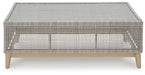 This coffee table invites your casual contemporary style outdoors. With its resin wicker in a chic neutral hue, it expertly marries refined design with durability. Breezy summer mornings and cold winter nights are made all the more enjoyable with a glass tabletop on hand to hold beverages, snacks and your latest poolside read.