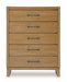 If you appreciate minimalistic style, this chest of drawers is the ideal option. Its soft and simple finish has a laid-back sensibility, blending relaxed contemporary design with a trendy allure. The spacious drawers are accented with stylish metal drawer pulls in a darkened bronze tone. What a delightful addition to your casual-chic decor.